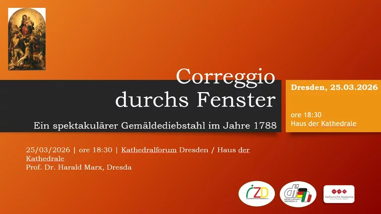 Erleben Sie den reichen kulturellen Austausch zwischen Dresden und Italien – von Bildender Kunst über Musik und Literatur bis zur Architektur. Der Vortrag zeigt, welches kulturelle Klima die Ankunft von Correggios Werken in Dresden möglich machte und welchen symbolischen Wert die italienische Kultur für das Prestige der Stadt hatte, die als „Elbflorenz“ bekannt ist.